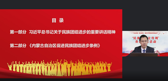 本次培訓(xùn)以良法善治,凝心聚力,鑄牢中華民族共同體意識(shí)為主題,中國(guó)政法大學(xué)劉東剛博士圍繞習(xí)近平總書記關(guān)于民族團(tuán)結(jié)進(jìn)步的重要講話指示精神、《中國(guó)共產(chǎn)黨統(tǒng)一戰(zhàn)線工作條例》《內(nèi)蒙古自治區(qū)促進(jìn)民族團(tuán)結(jié)進(jìn)步條例》《中華人民共和國(guó)國(guó)家通用語言文字法》《內(nèi)蒙古自治區(qū)實(shí)施〈中華人民共和國(guó)國(guó)家通用語言文字法〉辦法》《民族區(qū)域自治法》《城市民族工作條例》的重點(diǎn)亮點(diǎn)內(nèi)容進(jìn)行了解讀。