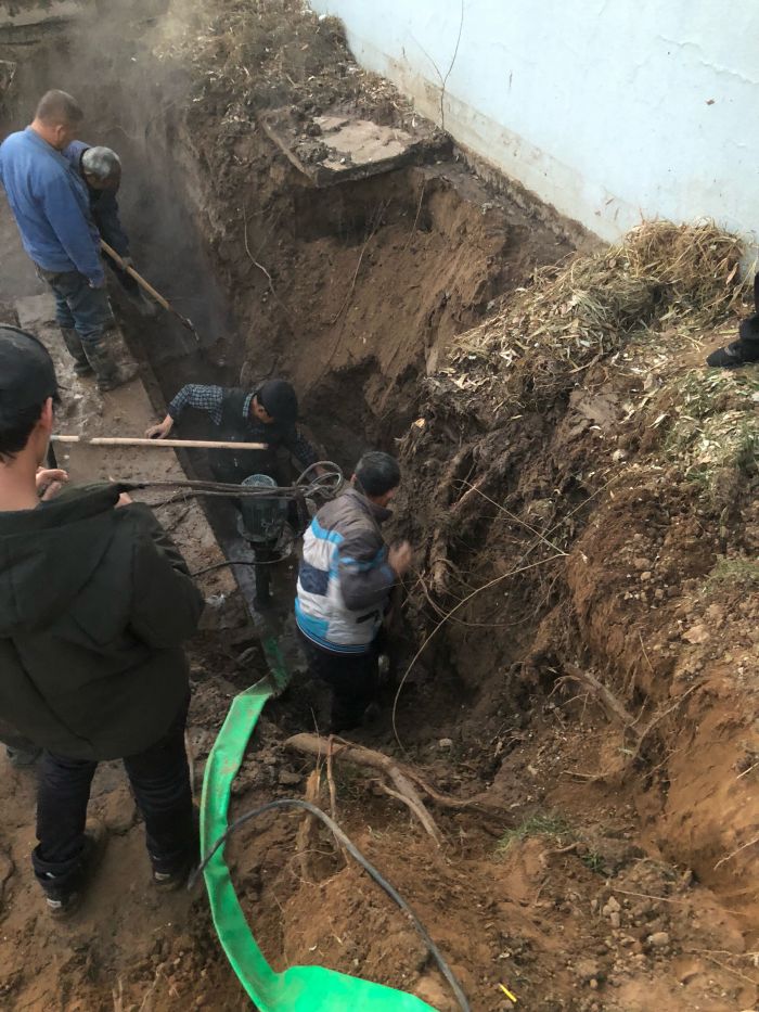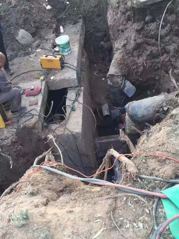 11月11日下午,中繼泵房專項高壓電閃落,1#、2#、3#循環(huán)泵因自動保護驟停。出現(xiàn)異常后,調(diào)度立即通知京能電廠降頻,檢修車間立即組織人員進行巡線,經(jīng)過15個小時不間斷排查,12日上午,發(fā)現(xiàn)如意舊網(wǎng)主線和1#站支線漏水嚴重。分公司檢修車間、運營二所和保駕護航單位迅速制定搶修方案組織搶修,經(jīng)理丁成斌、副經(jīng)理鄭紅飛親自到現(xiàn)場指導搶修工作。為準確找到失水點,搶修人員穿著隔熱服進入管溝內(nèi)查找漏點。由于漏水點管線錯綜復雜,施工難度非常大。接近管道時,發(fā)現(xiàn)漏點位置靠近井壁且管道腐蝕嚴重,壁厚較薄,采取整理外層補焊的方式進行修補。