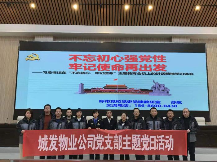 11月26日上午,城發(fā)物業(yè)公司全體黨員、入黨積極分子共計(jì)10人,由娜仁同志帶隊(duì),到市廉政文化教育基地參加呼市住宅小區(qū)環(huán)境秩序管理局舉辦的“不忘初心、牢記使命”主題教育培訓(xùn)班。市小區(qū)局黨支部副書記、副局長云梅同志主持。